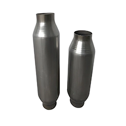 In order to fabricate these featured specialty car components, we use a combination of metal spinning and hydroforming processes. Working with stainless steel and CRS, the material is spun to form the cylindrical shapes, tight curves, and intricate grooves required of these components.